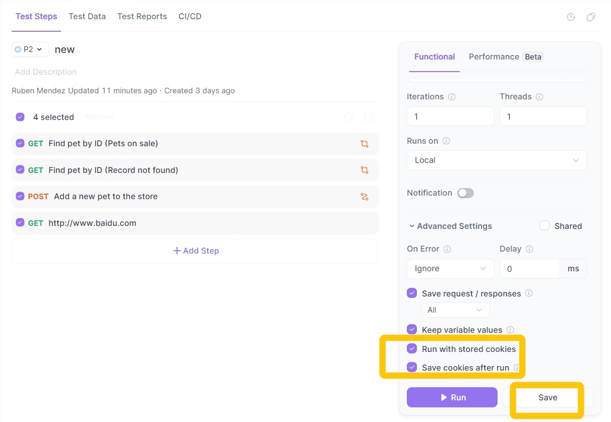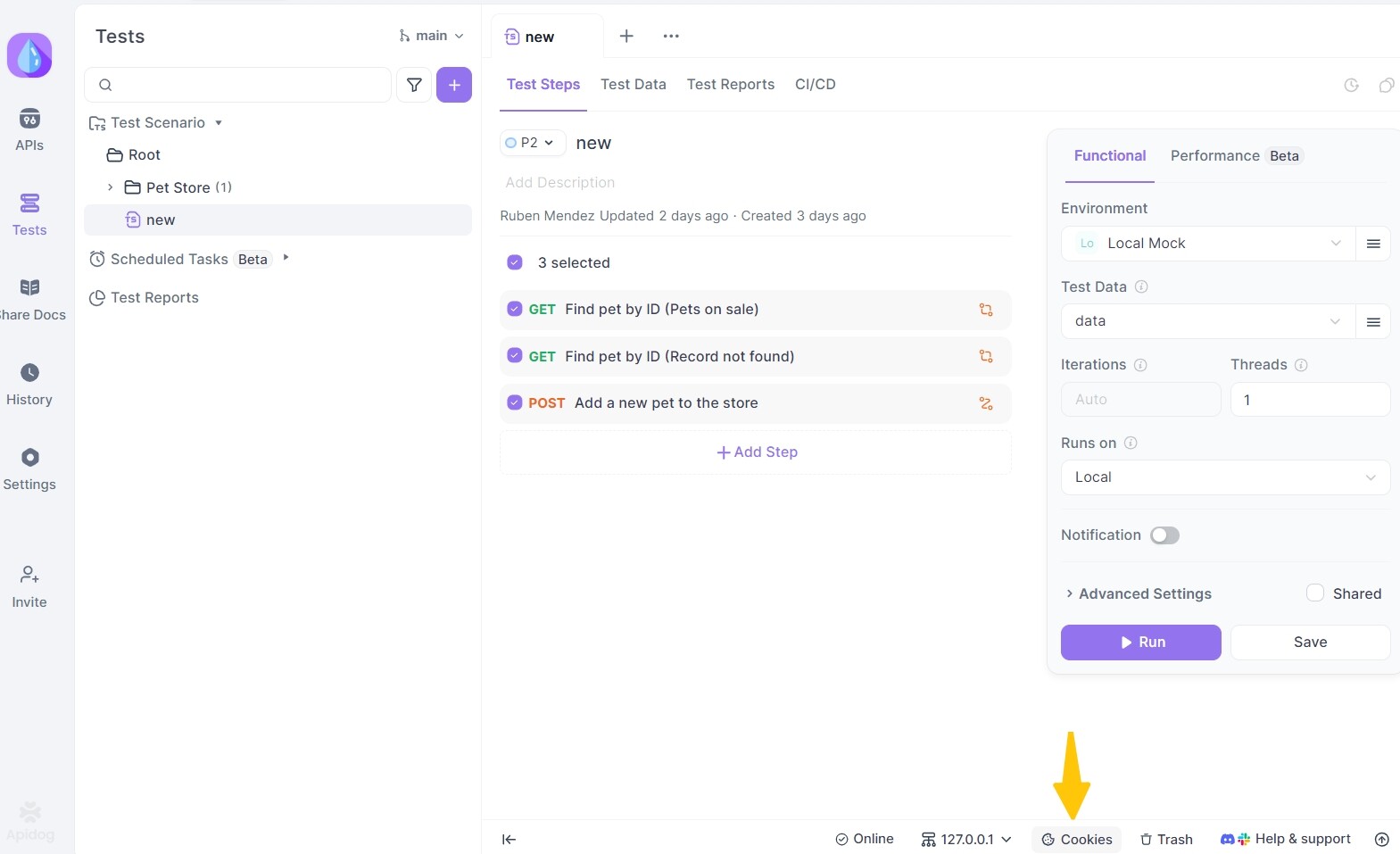 I want to use this cookie automatically when running API tests in the Test sidebar.