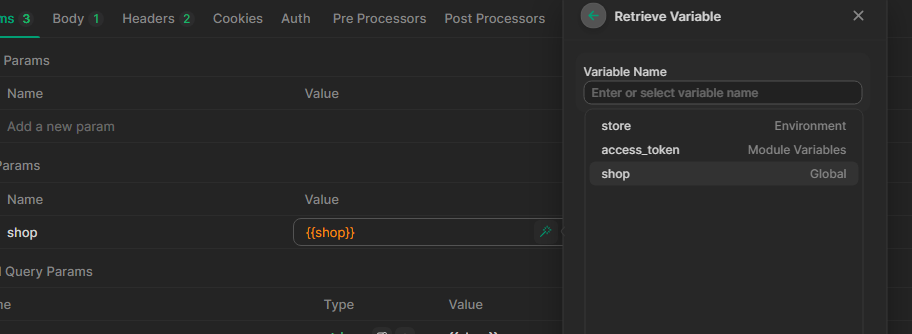 I setup variable on path params but it just receive value from global variable, maybe because of same name with global but this need to fix