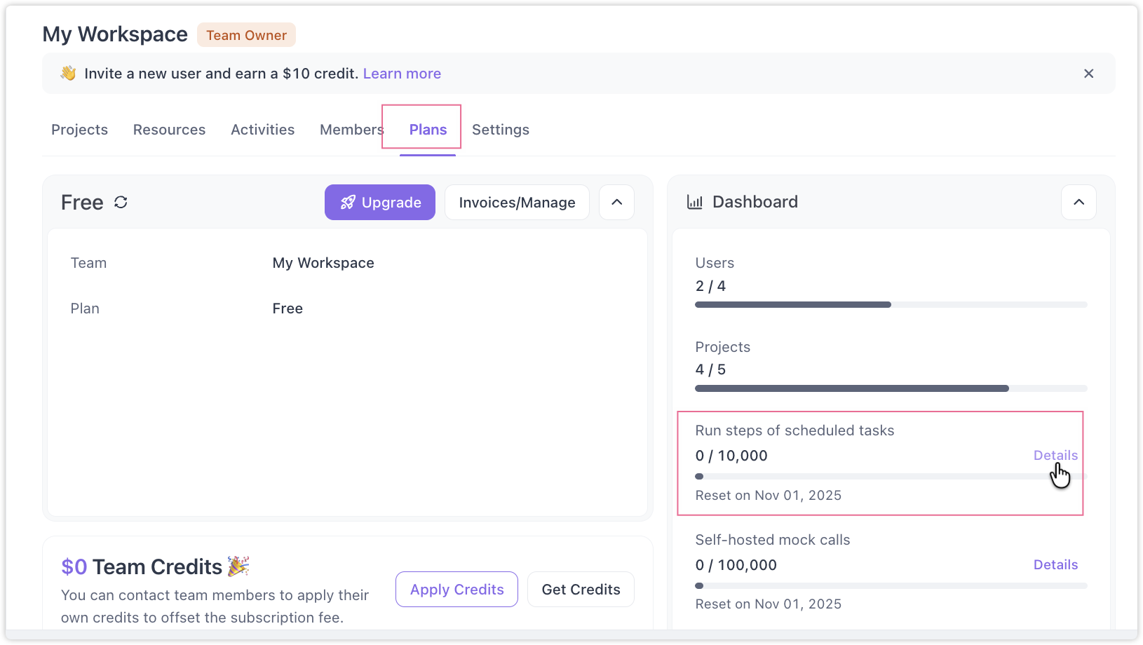 Task issuance failed. Current plan usage has reached its limit. Please upgrade your plan. Problem: where can I track the uses?