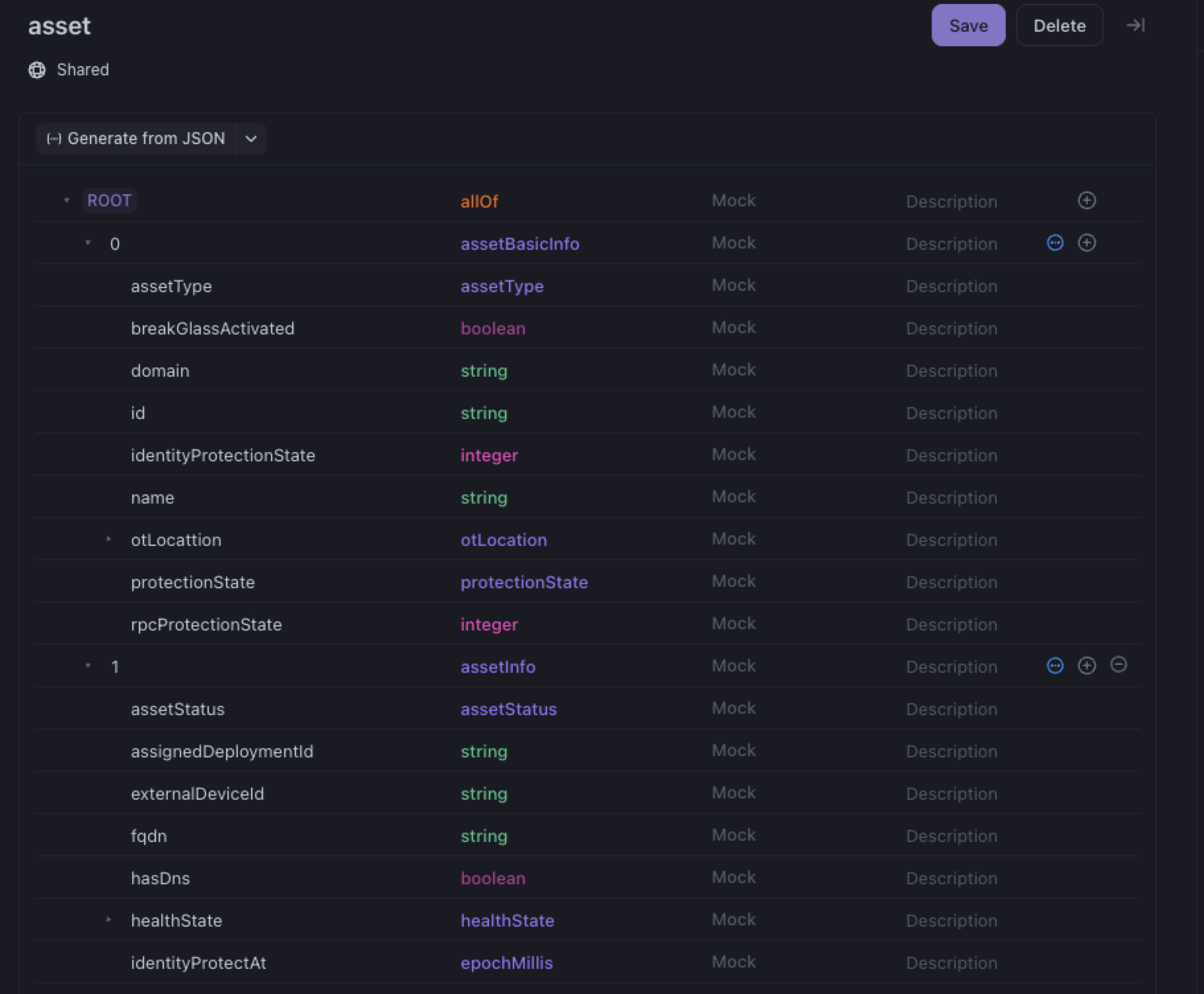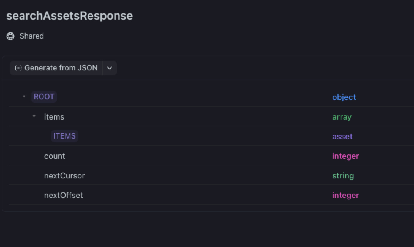 you can see on the asset there are properties that are defined as part of assetInfo which are saying 1. $.items[0] should not have additional properties assetStatus. AssetStatus is part of assetInfo which is referenced via allOf in asset.