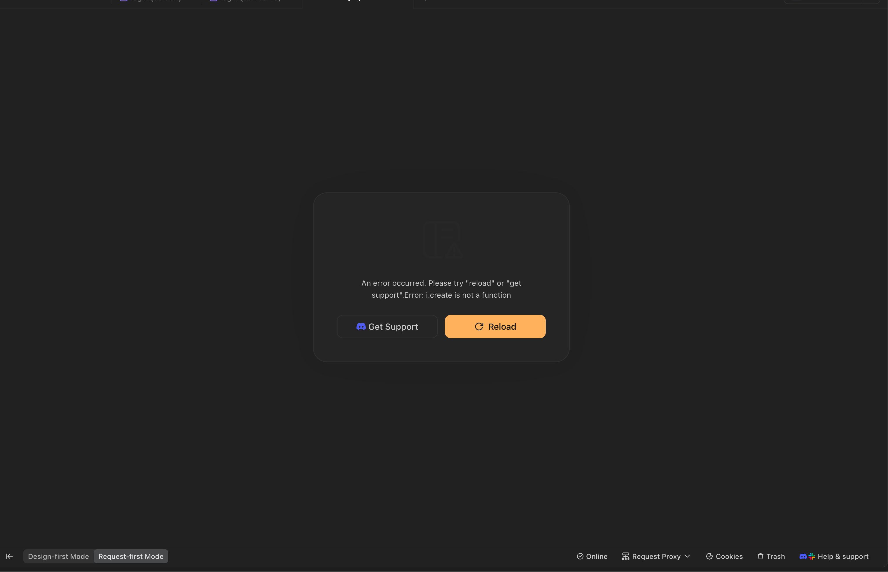 Hello, could you let us know what operation you were performing when this error occurred? You can try opening the console in Apidog by pressing “alt + 7 + 8” and check if there are more detailed error messages in the console when the issue appears.