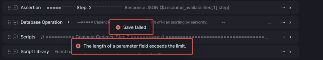 Hello, based on the error message “The length of a parameter field exceeds the limit”, this occurs because your post-processor script exceeds the system’s length limit. Please try shortening your script by removing unnecessary comments or empty lines.