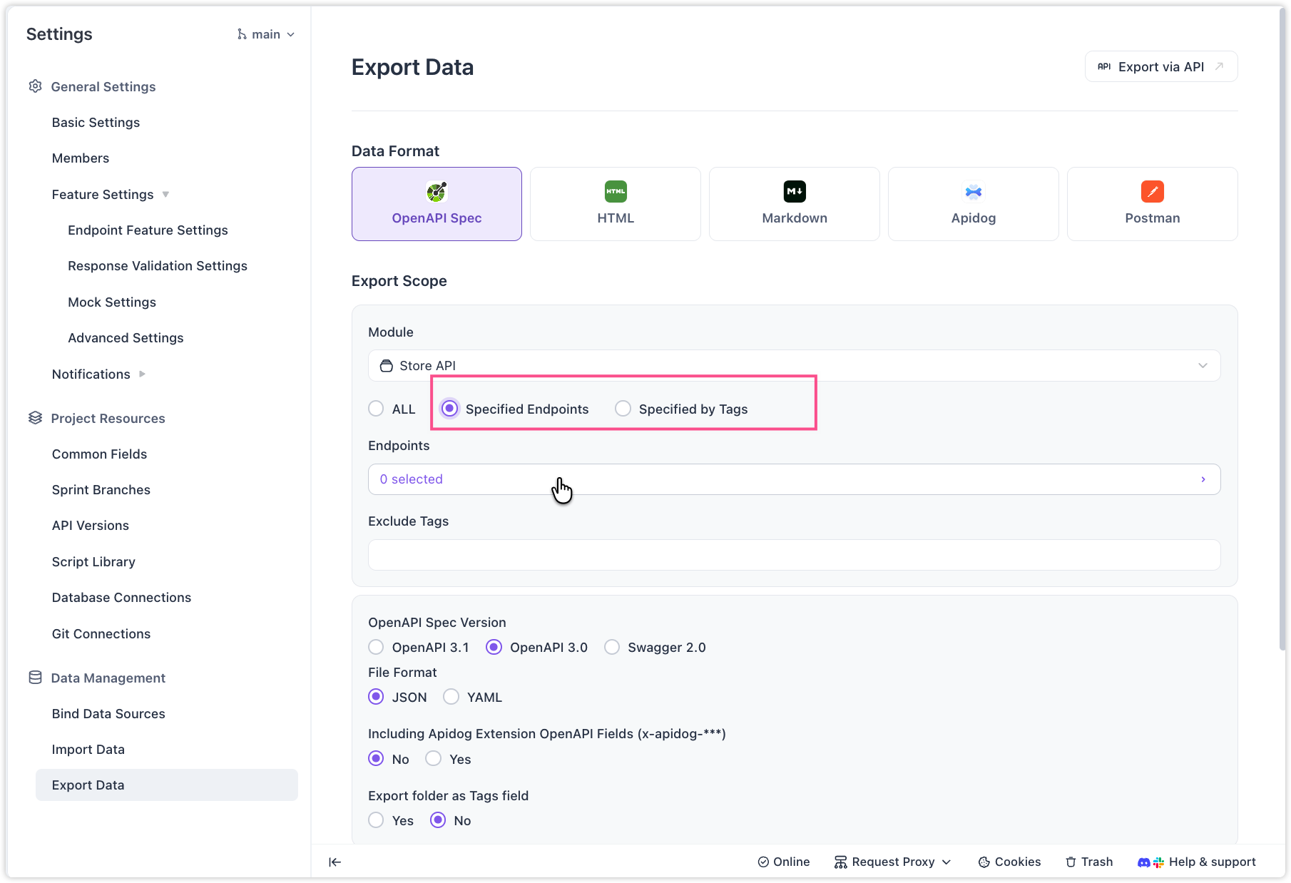 Allow only certain endpoints to be part of openapi.json during export