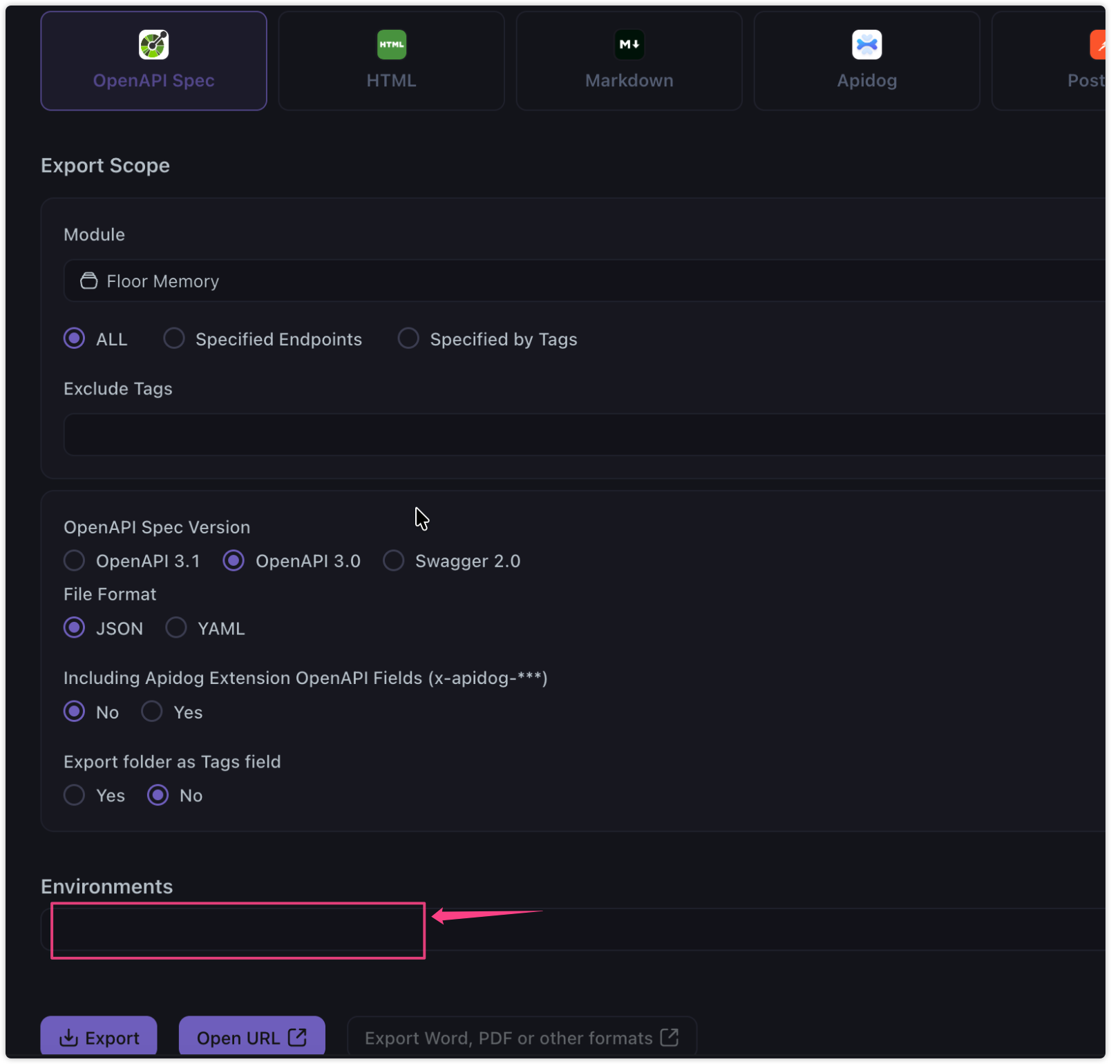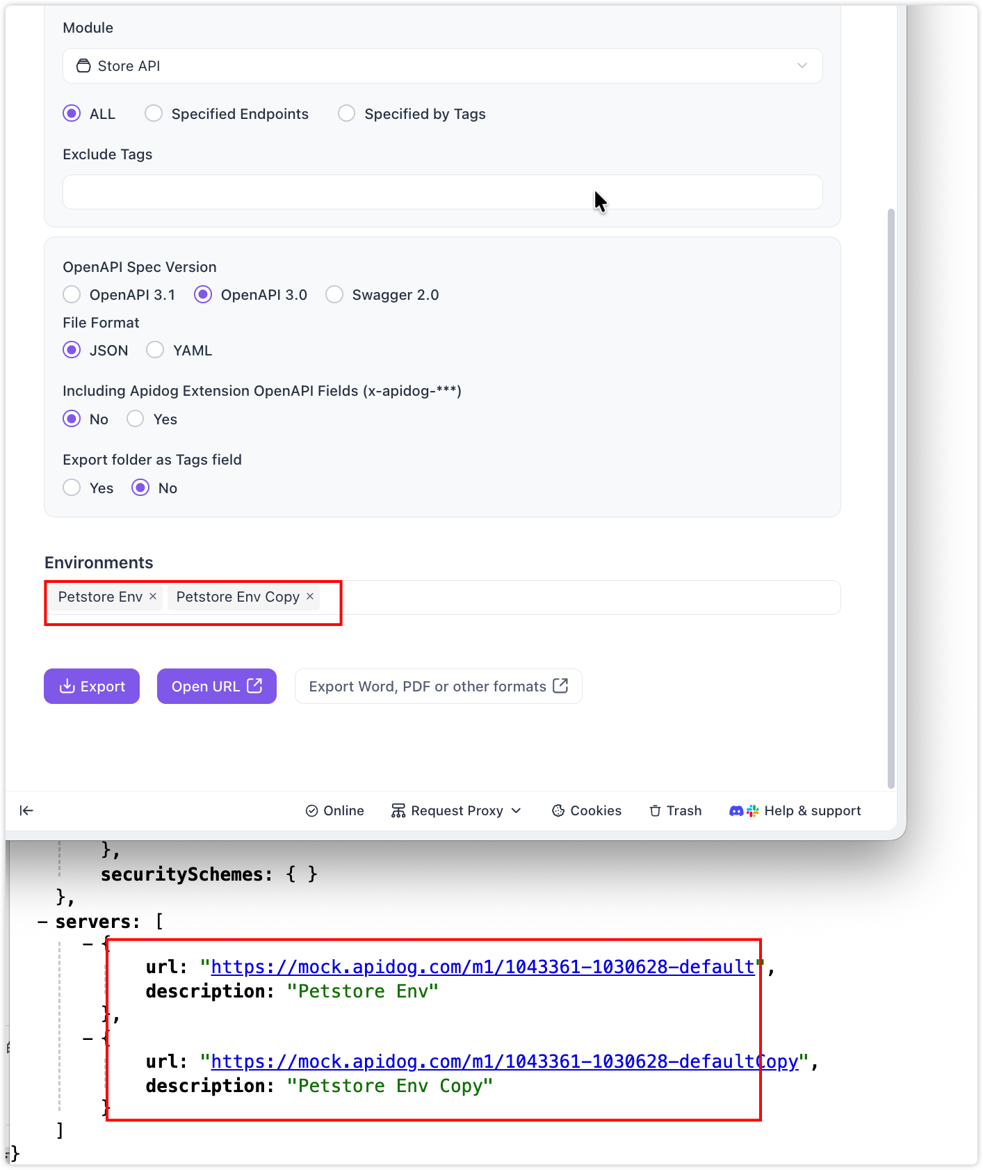 I exported to open api spec doc using your export functionality. But when I started parsing the json file, the “server” key is not getting filled inspite of having the development, testing and production urls specified. Is there any other way I need to specify the URL ?
