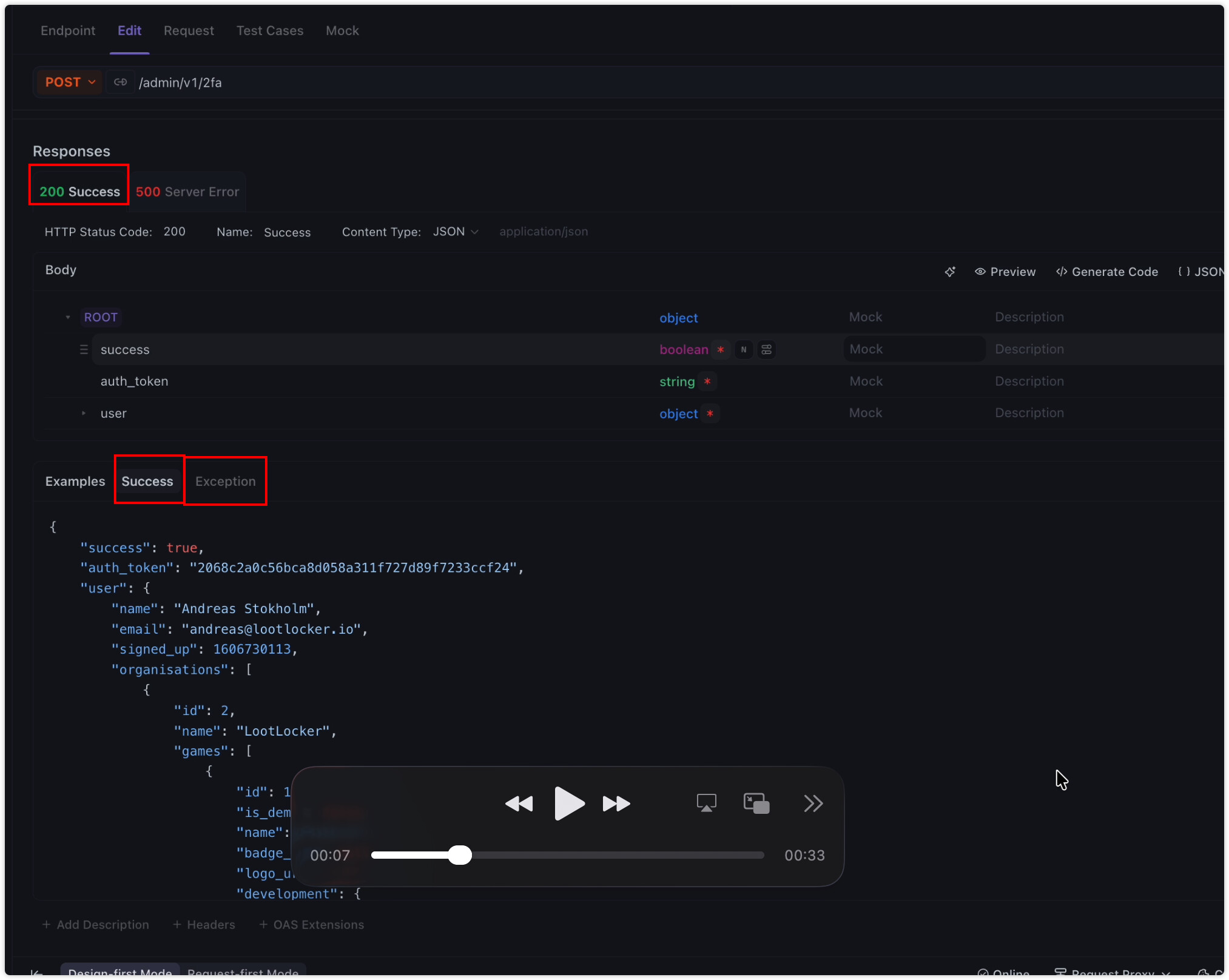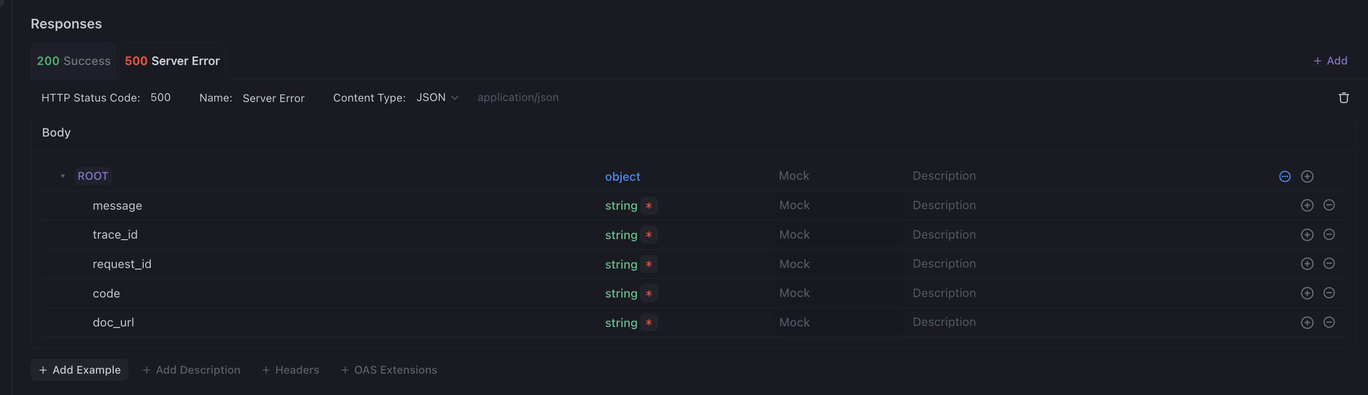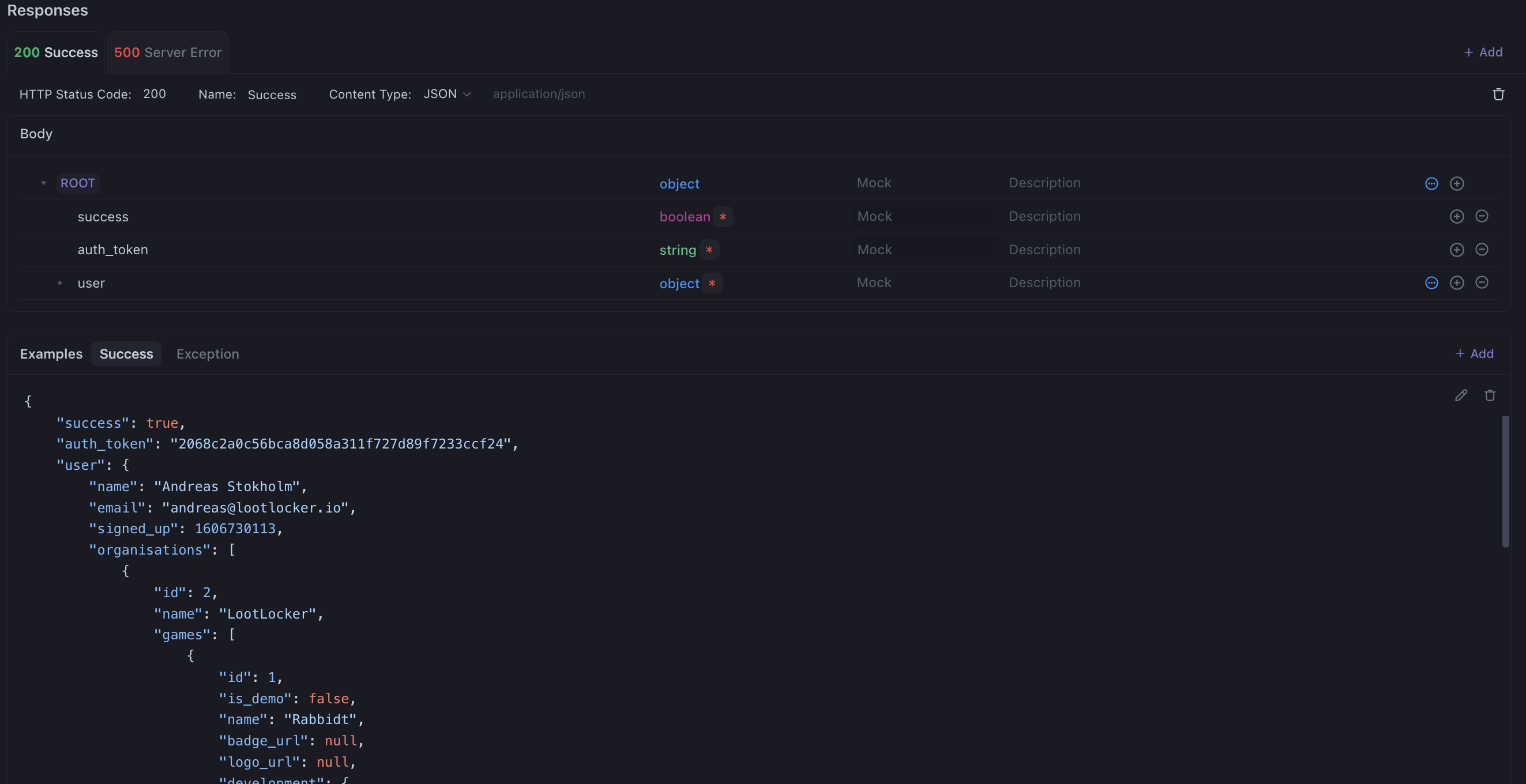 So when you then delete the success example the exception example becomes the new success example, but you’d expect the exception example to carry over as the 500 server error’s example if that makes any sense at all