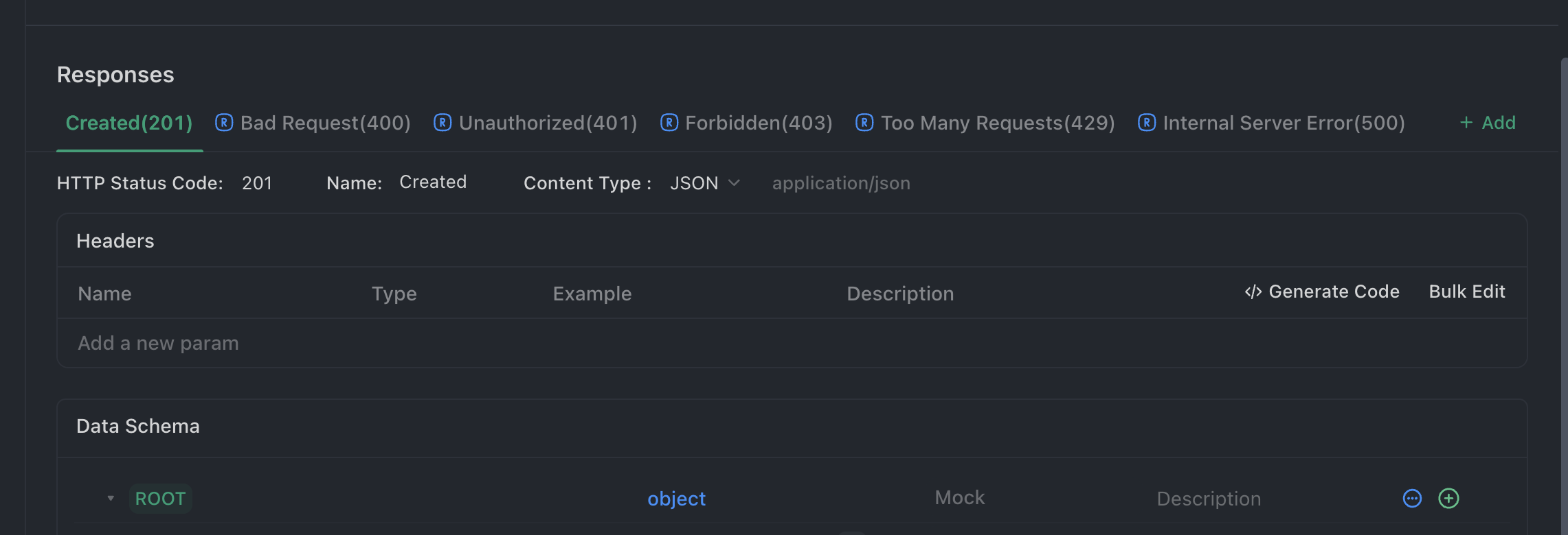 The sharable Response Components allow for setting up an “Add Example” and “OAS Extensions” but don’t allow for setting up HTTP Response Headers,
