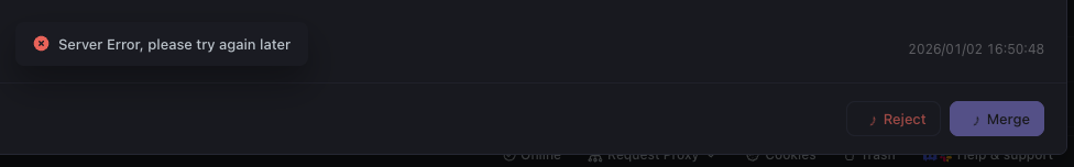 I’m getting Server Errors when trying to merge Merge Requests. Sometimes I am lucky and it goes through but most of the time it is failing. Any issues on your backend?