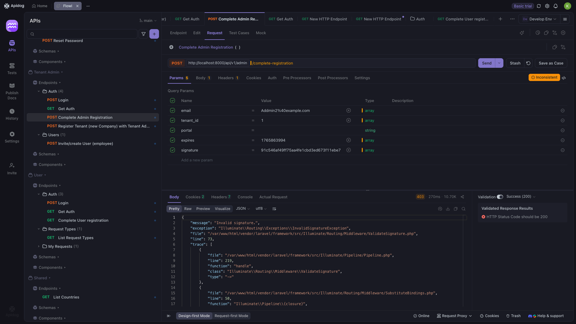 when sent the migck url to email and use this signature and parameter the api didn’t work