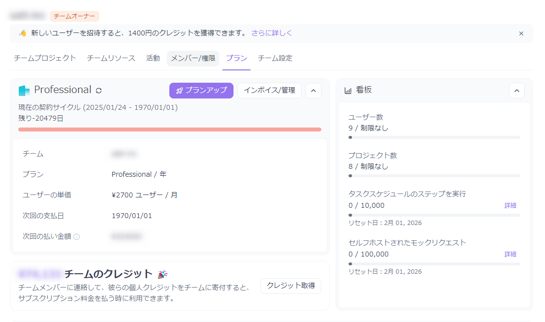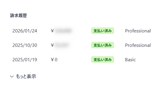 1月24日に請求が来て支払いも完了した(Receiptファイル受領済)のに、チームメンバーが利用できなくなってしまった。